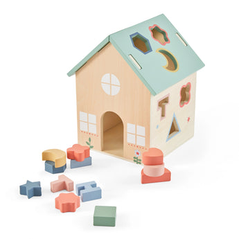 Ce mignon trieur de formes est le jouet parfait pour jouer à la maison ! Ce jouet de tri en forme de maison est fabriqué en bois durable et est décoré avec des fenêtres, un toit amovible et 12 fentes différentes. Tout ce que votre petit doit faire, c'est pousser les blocs multicolores à travers les trous correspondants.