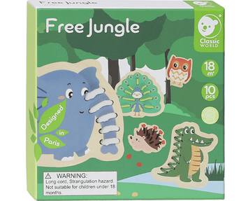 Ces puzzles à enfiler colorés, parfaits pour les enfants à partir de 18 mois, donnent vie à la jungle avec des petits animaux joyeux ! Votre tout-petit peut enfiler le fil à travers les pièces de puzzle en bois et ainsi compléter les animaux.