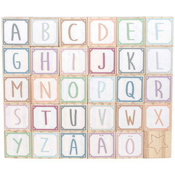 Ensemble de blocs en bois - Alphabet suédois et chiffres